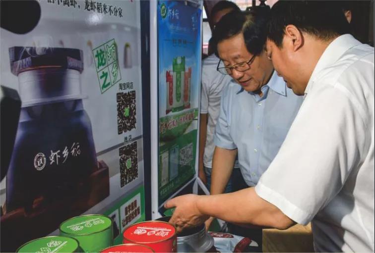 中國(guó)糧油學(xué)會(huì)理事長(zhǎng)張桂風(fēng)、省糧食局局長(zhǎng)胡新明調(diào)研蝦鄉(xiāng)食品